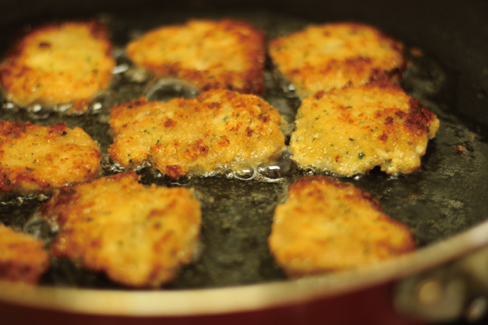 フライパンで簡単チキンカツ(和風にんにく醤油風味)は少量の油で揚げ焼きにするだけ◎仕上げにふんわり卵でとじれば、食べ盛りのお子様も喜ぶボリュームメニューが簡単。