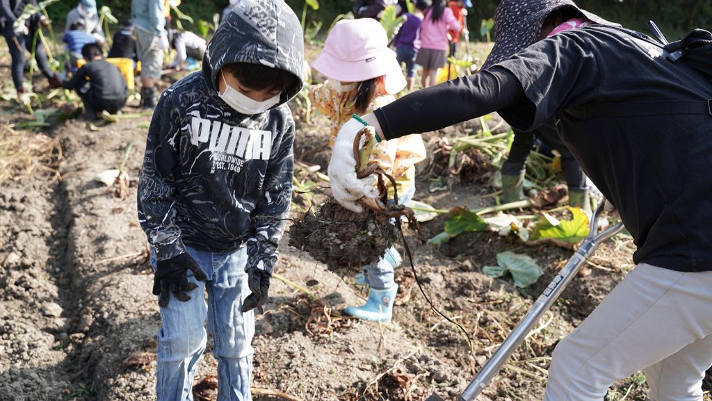 ほとんどのご家族が里芋を収穫するのは初めて。予想以上に大きく、重たい里芋に興奮されていた姿が印象的でした。サツマイモに比べて、小さなお子様にとってはとても大変な作業なのですが、家族で協力して、たくさんの里芋を収穫し、持ち帰って頂くことができ、私たちもひと安心。今後も有機野菜に触れられるイベントを開催したいと思います。ご参加お待ちしております!