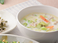 - 鍋にオリーブ油とみじん切りにしたにんにくを入れて温め、それぞれ角切りにした野菜を、玉ねぎ、ズッキーニ、茄子、ピーマン、トマトの順に加え炒める。塩胡椒で味を調える。