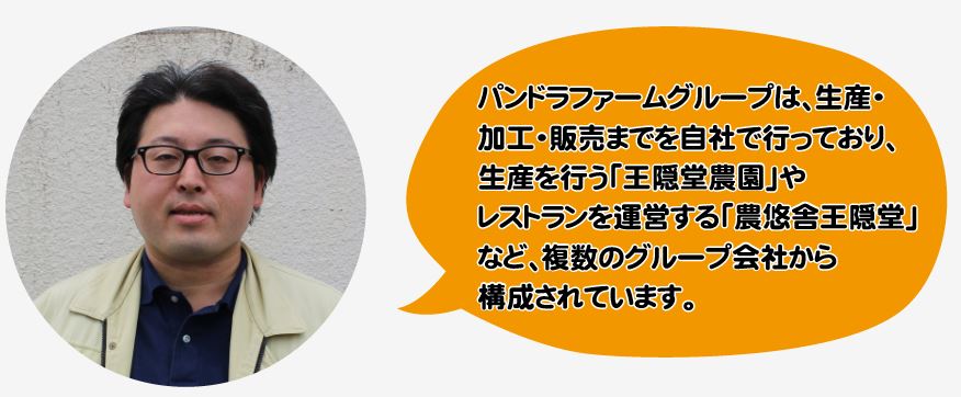 パンドラファームグループの始まりは、現在グループ会社の代表である、王隠堂誠海(おういんどうまさみ)さんにあります。社名にもなっているこの珍しい苗字は、今から遡ること約700年前の南北朝時代。京から吉野に逃げてきた後醍醐天皇を堂にかくまってあげたことから、天皇より授かった苗字なんだそう。